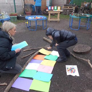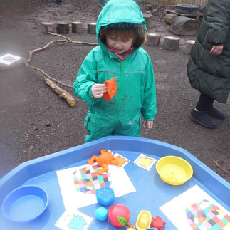 Seals Class enjoyed the story of Elmer and made a giant Elmer the elephant using logs found in Forest School. They used coloured paper to create the pattern, which Elmer is so famous for. Continuing the Elmer theme, it would not be Forest School without mud, so it was the children’s turn to strengthen their fine motor skills and wash the mud from the elephants in order to get them clean. As well as Elmer’s beautiful pattern, we looked at identifying and sorting different coloured objects.