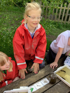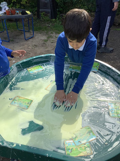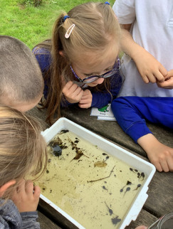 Pupils learn about the life cycle of the frog and use their reflective learning skills to recall seeing the frogspawn on the pond all those weeks before. Luckily, there are a range of sizes and stages of development for the tadpoles so that the children can follow the various stages of growth and changes in features.