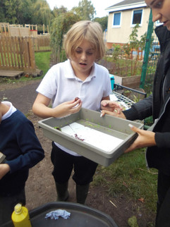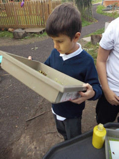 Early years classes have continued to work with natural resources and have been taking part in activities such as conker threading, weighing conkers using balance scales, conker snails, counting conkers and making faces using natural resources. The mud kitchen is up and running and more pupils are taking advantage of the messy play area.